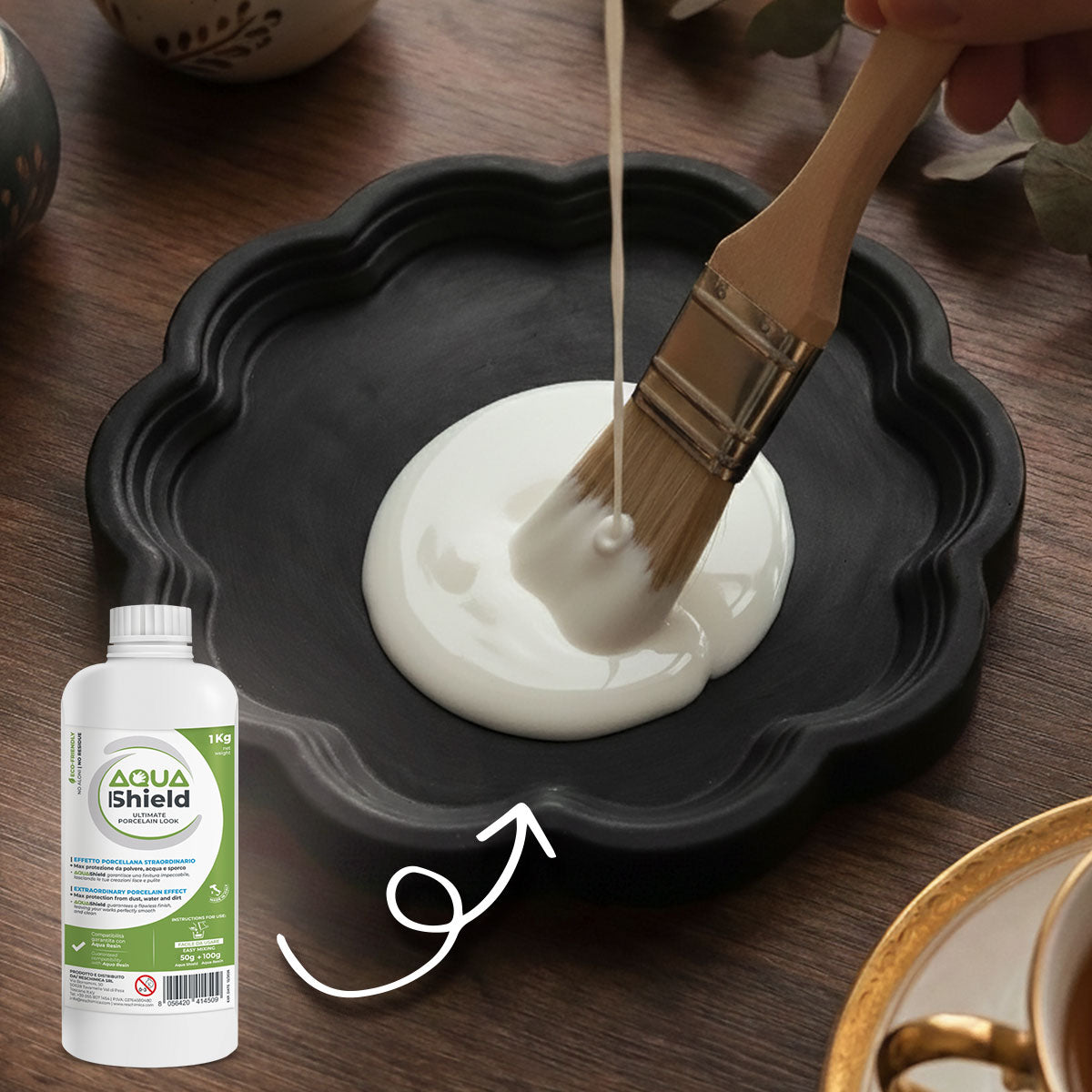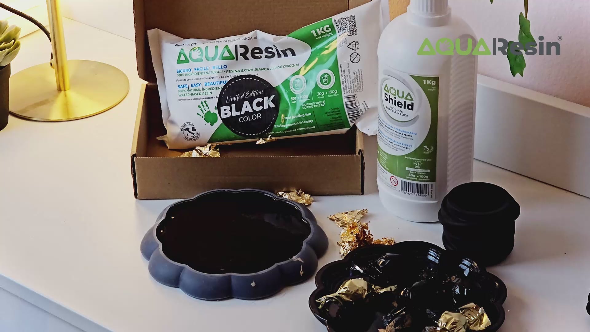 The Aqua Resin Black Kit is a complete set designed for those who want to create contemporary decorative pieces — without complications.